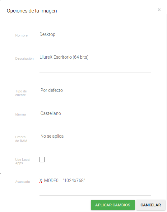 | Use Local Apps | Esta opción solo tienen sentido en los clientes ligeros, arrancará las aplicaciones en local en lugar hacerlo directamente sobre el servidor. De manera que actúa como un híbrido entre cliente ligero y semiligero. |