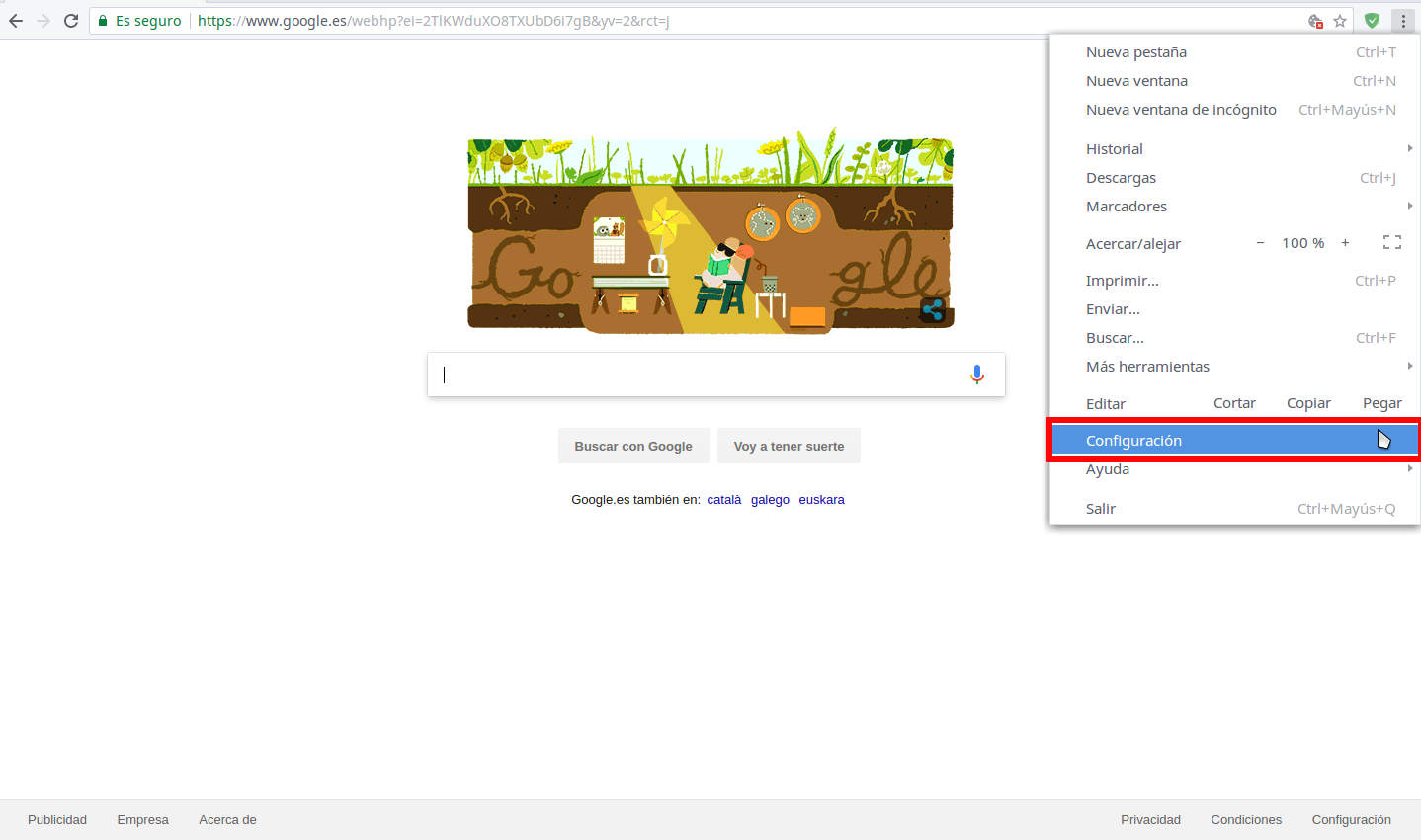 Se puede solucionar de una manera bastante sencilla, vamos a la opción de configuración en Chrome: