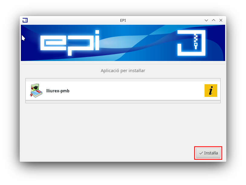 A continuació, es mostra la finestra de *EPI on s'indica el paquet a instal·lar. Fent clic a Instal·lar començarà el procés d'instal·lació.
