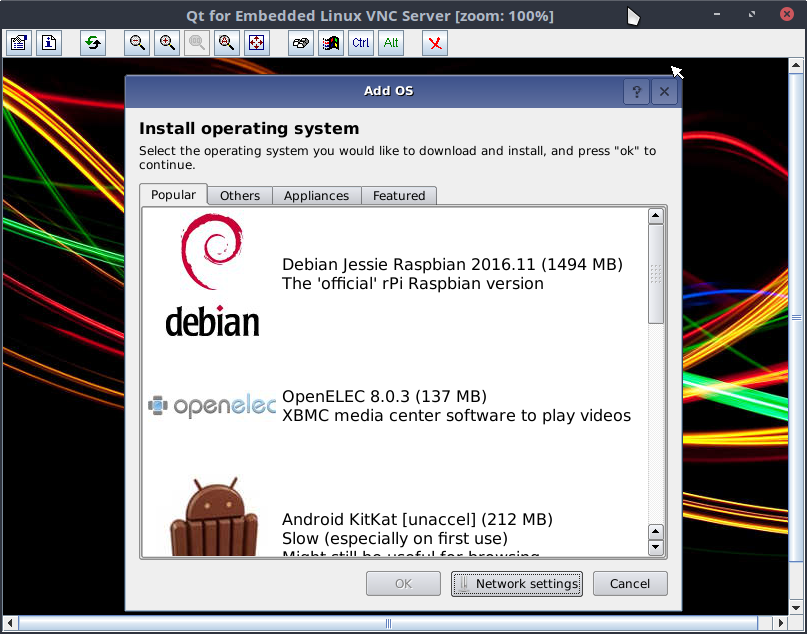 Una vez terminado nos aparecerá una lista de sistemas operativos que podemos instalar. Cuando seleccionemos un sistema operativo lo que va a hacer es descargar ese sistema operativo desde internet y lo instalará en el dispositivo que hemos seleccionado.