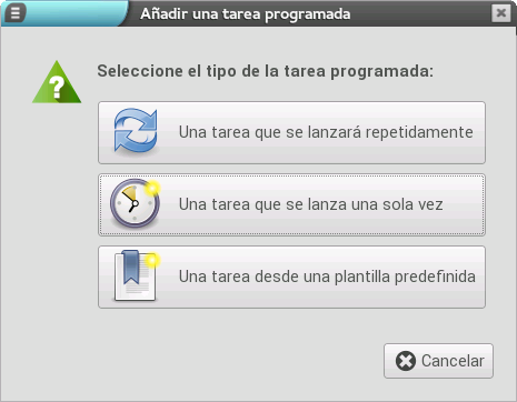 En caso de seleccionar la segunda opción, Una tarea que se lanza una sola vez, se muestra una nueva ventana donde debemos indicar: