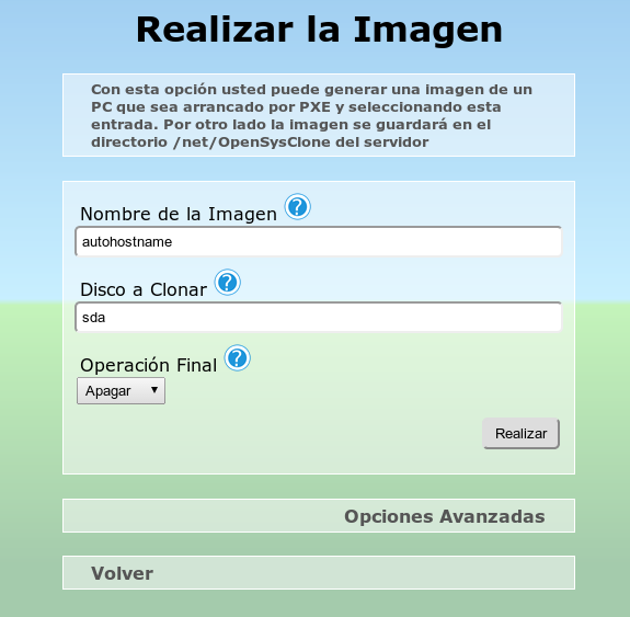 Tan solo nos queda presionar en REALIZAR para que nuestro server este preparado para obtener y crear la imagen de un cliente previamente instalado y definido a nuestro gusto.
