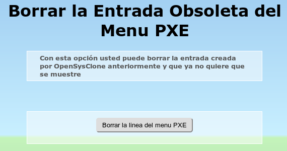 Seleccionando esta opción lo que pretendemos es eliminar la entrada que crea Open-SysClone en el menu PXE, ya sea de creación de imagen o de restauración.