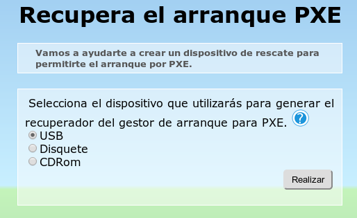 Desde LliureX hemos visto que algunas máquinas sino poseen el menu GRUB de LliureX no son capaces de arrancar por red directamente desde la BIOS o con su opcion de arranque por red, así que hemos creado una opción que nos facilitará el proceso, creando a través de distintos dispositivos, unas herramientas que nos permitirán el arranque por red y nos cargarán nuestro menú PXE.