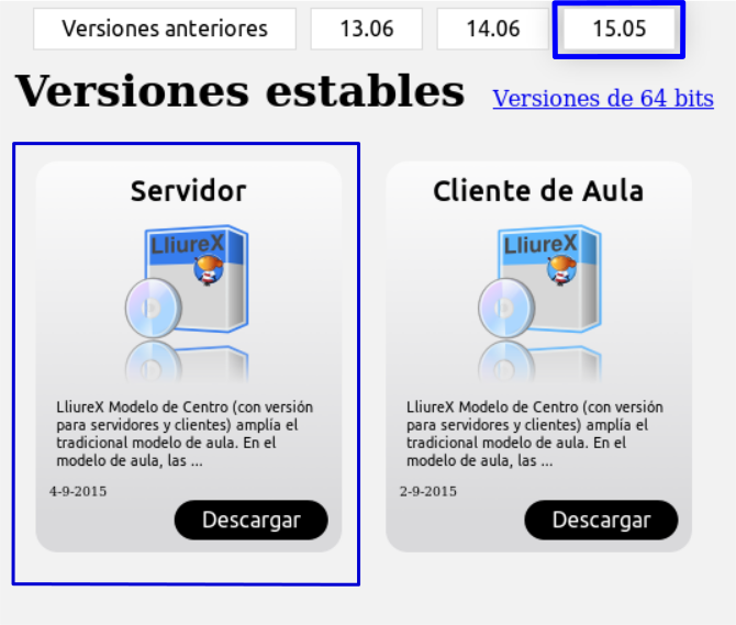 Antes de comenzar la instalación es necesario descargar la imagen correspondiente a la versión de la adaptación LliureX Servidor desde el apartado de descargas de la web de LliureX.