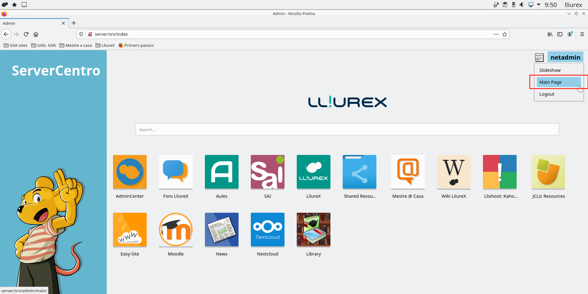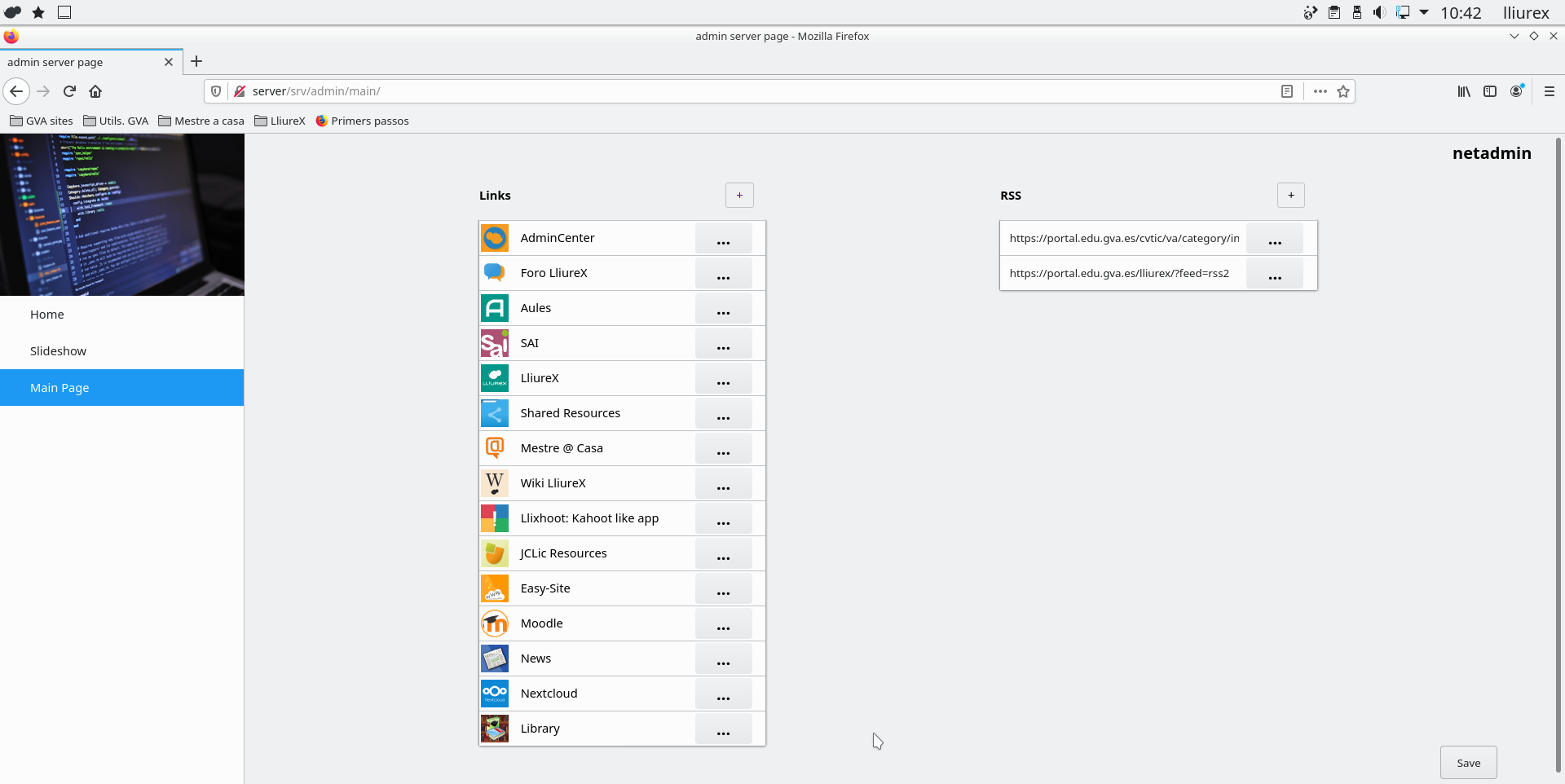 La nova versió de LliureX inclou com una de les seues novetats una nova pàgina d'inici del servidor. Aquesta nova pàgina presenta un nou disseny més actual i inclou un mòdul d'administració que permet personalitzar alguns aspectes d'aquesta. En el següent article es descriu amb més detalle la nova pàgina d'inici.