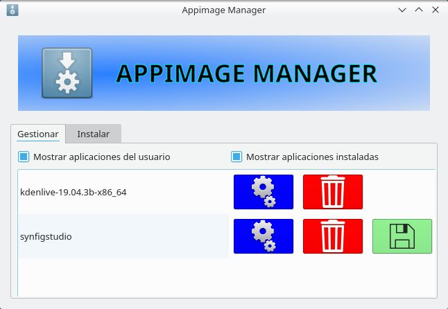 Al ejecutarlo el programa nos mostrará la ventana de gestión de appimages