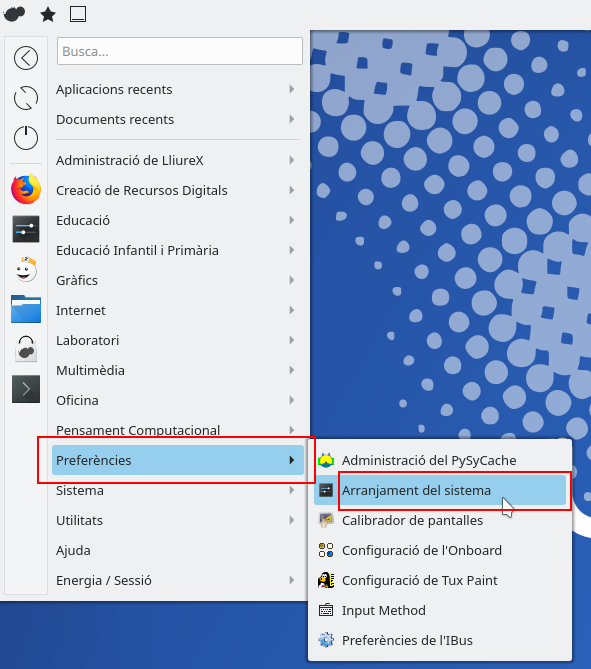 Per a iniciar l'Assistent d'impressió cal anar a Inici > Preferències > Arranjament del sistema.