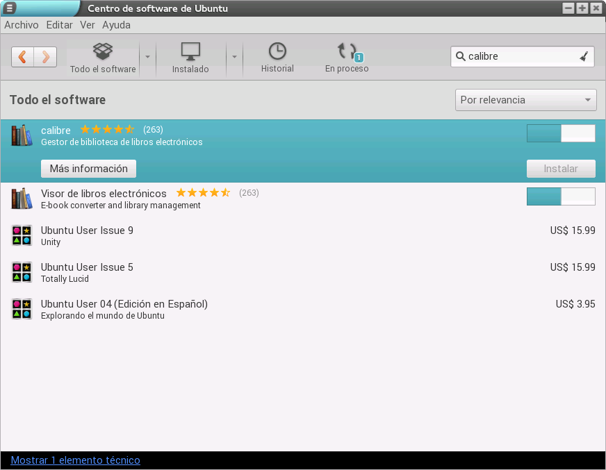 Ahora estamos en disposición de realizar la búsqueda, para lo que escribimos: el nombre de la aplicación, del paquete o su descripción, en la barra de búsqueda y, a medida que lo hacemos, se muestran los paquetes que coinciden.