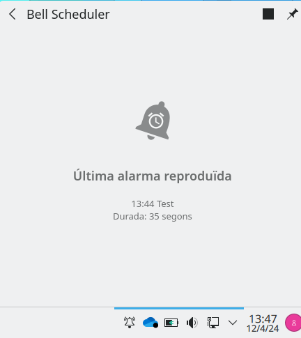 Situant el cursor sobre la icona del *Bell-*Scheduler es mostrarà la informació sobre l'última *alarama reproduïda.