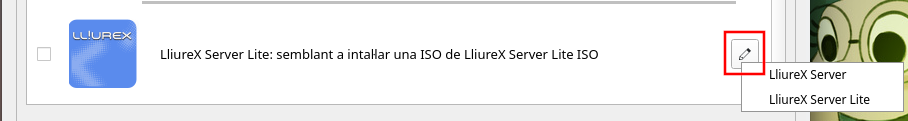 - Servidor Lite: equival a instal·lar una ISO de Servidor-Lite de Lliurex (semblant al servidor complet però sense les aplicacions educatives). En aquest cas, als metapaquets ja install·ats en el sistema, s'afig el metapaquet lliurex-meta-server-lite