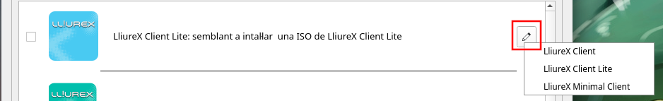 - Cliente Lite: és equivalente a instalar una ISO de Cliente-Lite de Lliurex (similar al client complet però sense les aplicacions educatives). En aquest cas als megapaquets ja instal·lats s'afegeix el metapaquet lliurex-meta-client-lite