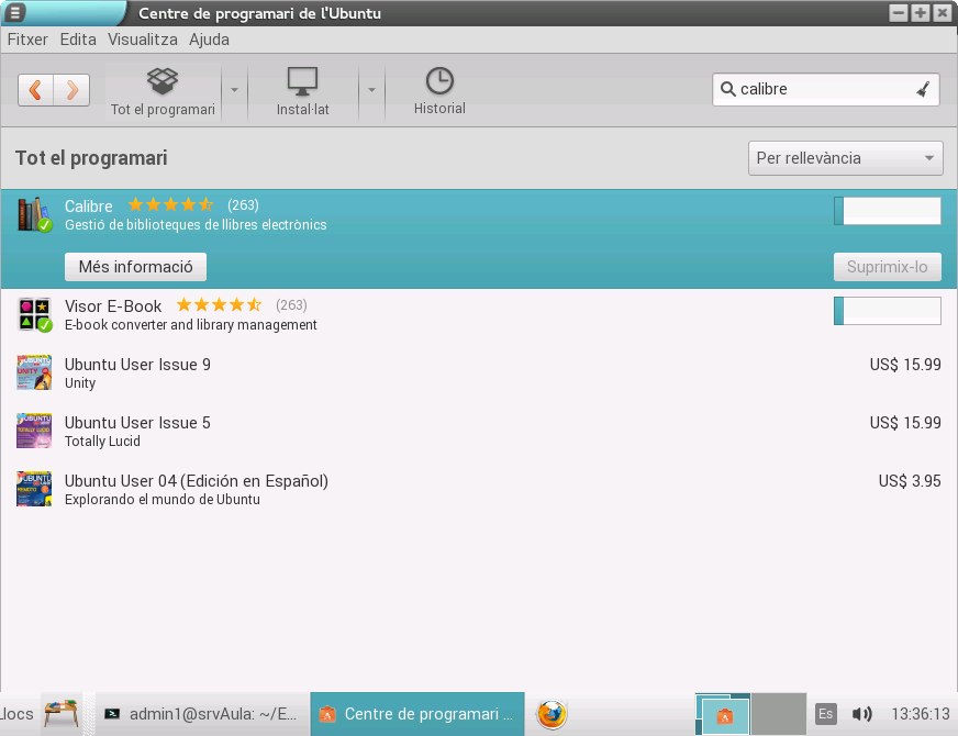 Aquesta aplicació és la forma més senzilla d'Ubuntu per a instal·lar o eliminar programes. Per a accedir-hi hem d'obrir el menú Aplicacions -> Instal·lació de programari.