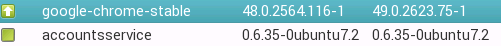 • El quadre està ena verd amb un símbol d'exclamació: significa que el paquet està instal·lat, però que hi ha una nova versió disponible.