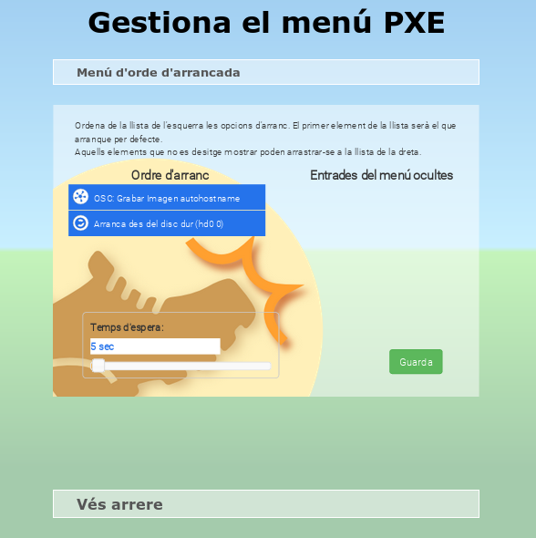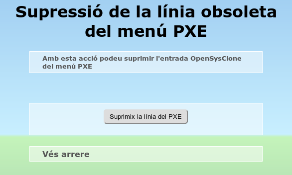 En accedir a aquesta opció, únicament es mostra una opció (botó Elimina l'opció en el menú PXE) que realitza la tasca desitjada