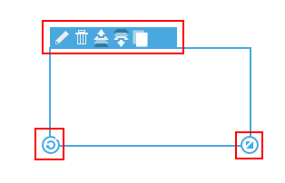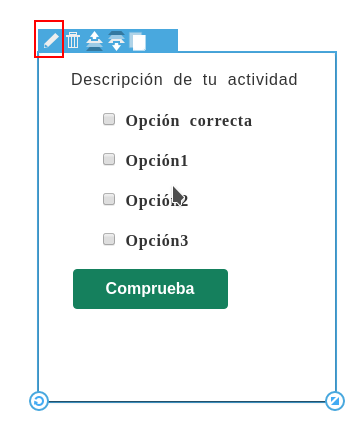 Al hacer clic sobre el componente se mostrará en su parte superior una barra de herramientas con opciones para editar, borrar, superponer, sobreponer y duplicar.