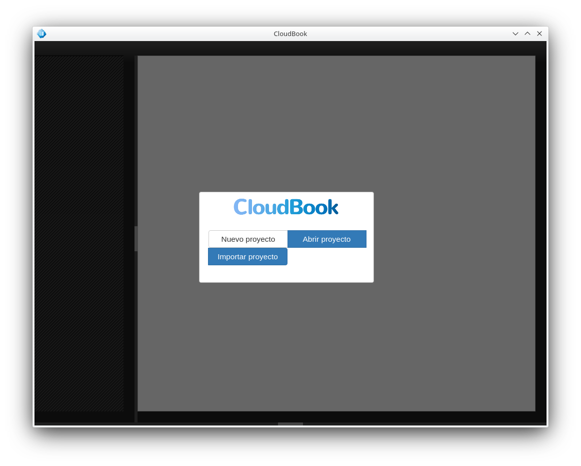 Cuando se accede al Cloudbook por primera vez aparecerá una ventana para crear, abrir o importar un proyecto. En nuestro caso inicial vamos a crear un proyecto desde Nuevo Proyecto