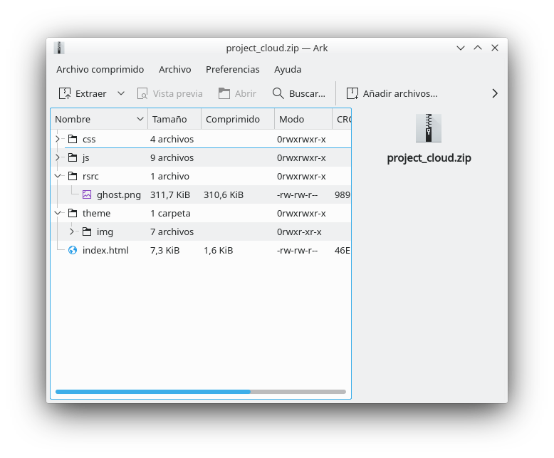 Como se ha comentando la otra opción de exportación disponible es WebZIP. Si se selecciona habrá que indicar el nombre del fichero zip que se generará. El resultado es un zip que contiene un fichero HTML con el contenido del proyecto. Este formato es especialmente útil para incrustarlo en plataformas de E-learning tales como Aules ( Moodle ) o similares.