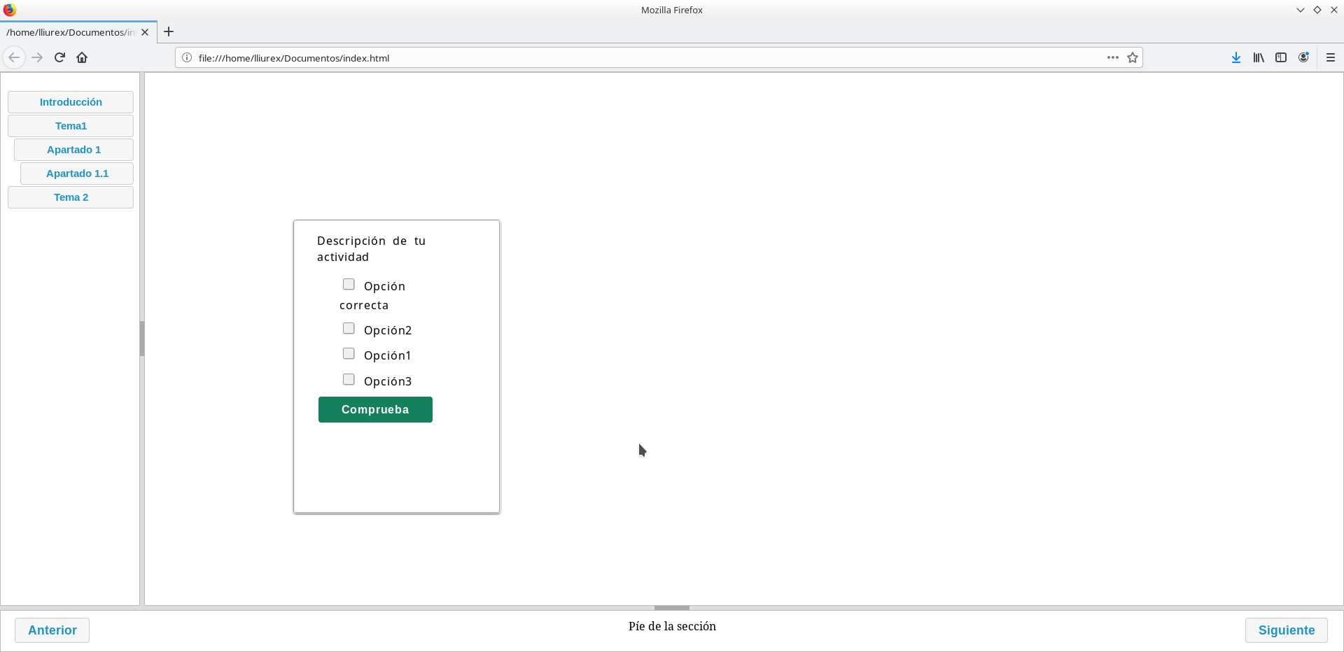 • Lienzo (4): es la zona donde se elabora el recurso educativo. Cada sección cuenta con su propio lienzo, mostrándose en cada momento el lienzo correspondiente a la sección activa