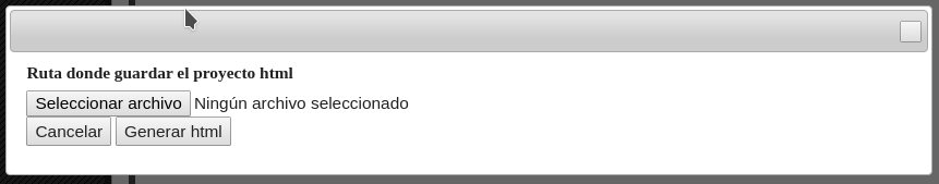 Si se exporta a HTML se mostrará un cuadro de dialogo para indicar la carpeta donde se generará el fichero html (Por defecto index.html)