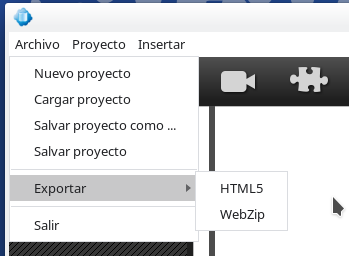 Una vez elaborado el proyecto este puede ser exportado en 2 formatos HTML o WebZIP para facilitar su distribución.