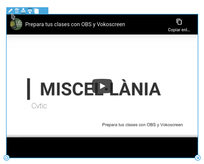 • Componente Video de YouTube: Permite incrustar en el lienzo un hipervínculo vídeo de YouTube. Se mostrará un cuadro de diálogo para introducir la url correspondiente.