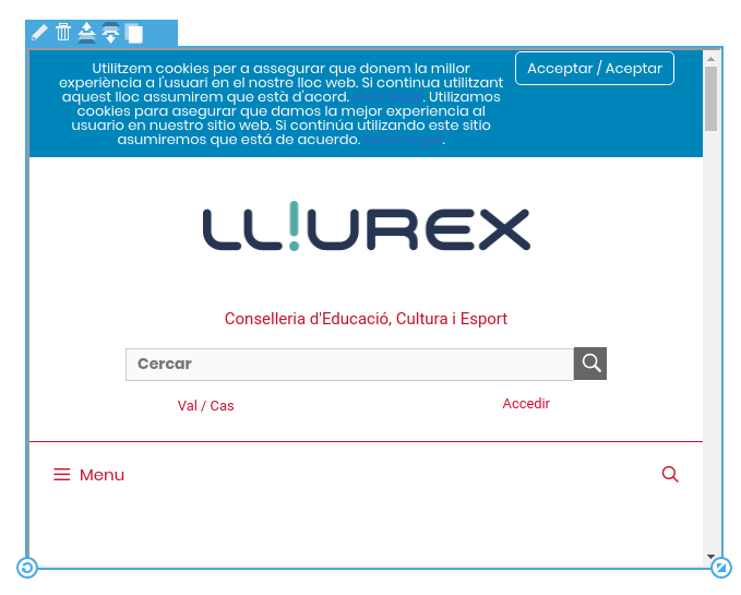 Tras introducir la url ( debe tener el formato http://www.lliurex.net ), se mostrará en el lienzo el contenido correspondiente: