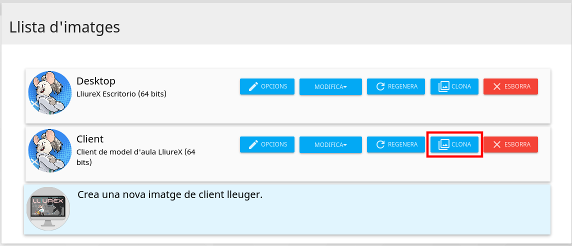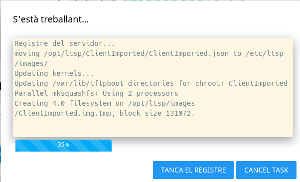 Quan acabe el procés podem comprovar com en LTSP-Gestió de Imatges de client apareix la imatge recentment importada
