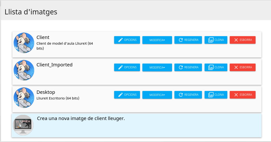 i accedirem a l'opció Gestió d'imatges de client, per a veure les imatges disponibles