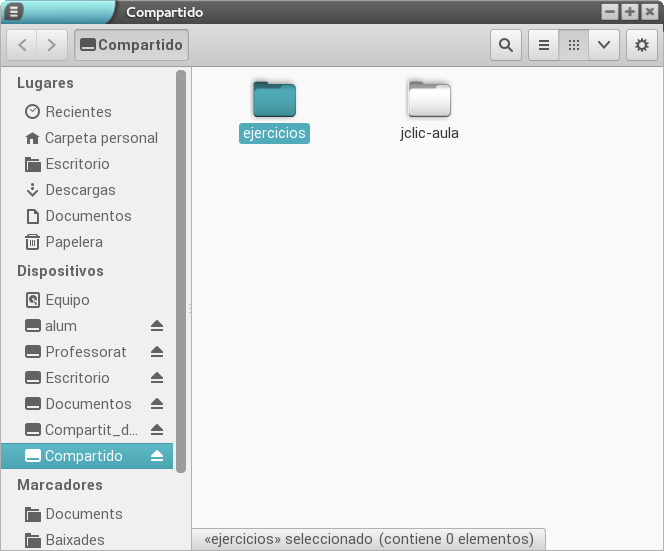 Si un alumno o alumna, por ejemplo, abre su carpeta Compartido, verá exactamente lo mismo que tenemos en nuestra carpeta del mismo nombre.