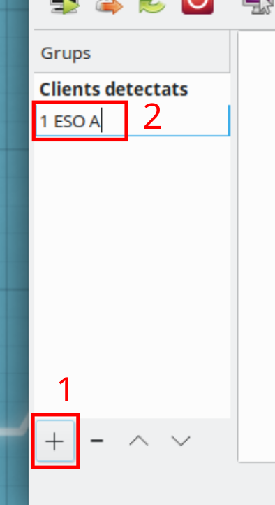 En un principi només hi ha un grup anomenat Clients detectats, grup que conté tots els clients detectats pel servidor, però podem crear-ne de nous polsant el botó + situat en la part inferior. Això fa que es cree una etiqueta nova per al grup i en permeta l'edició del nom. Quan acabem n'hi ha prou amb polsar la tecla Retorn.