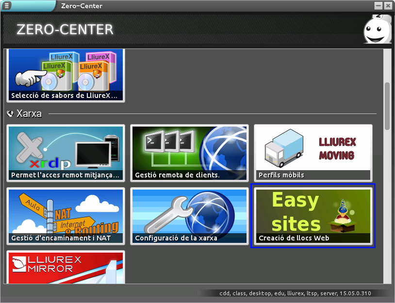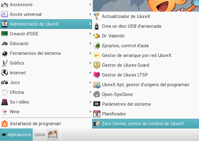 Aquesta aplicació ve instal·lada per defecte en tots els servidors, per la qual cosa podem accedir a través del Centre de control de Lliurex, al menú Aplicacions -> Administració de LliureX -> Zero Center, centre de control de LliureX.