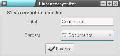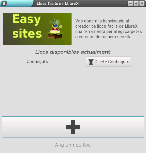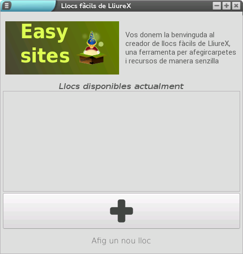 Després de polsar l'opció, es mostra un diàleg en què podem afegir llocs nous i, en cas d'haver-hi llocs disponibles, es mostren els llocs actius actualment.