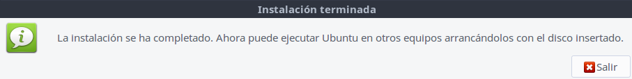 Le damos a Crear disco de arranque y entonces empezará el proceso de instalación. Es un proceso que tardará bastante, siempre en función del tamaño de la imagen y eliminará cualquier contenido que tengamos en el disco. Cuando termine el proceso de instalación nos aparecerá el siguiente mensaje:
