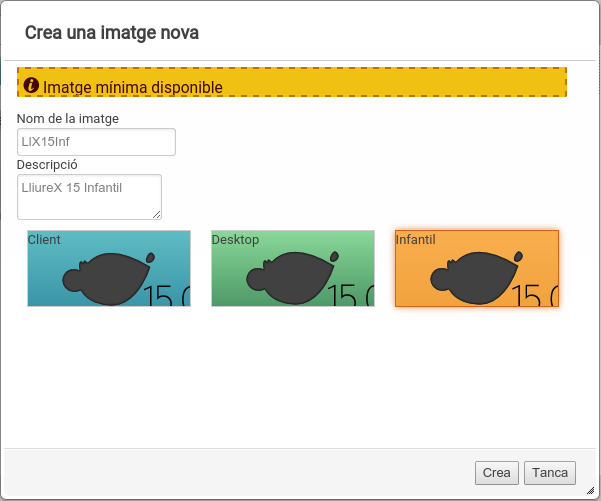 A més, i encara que no disposem de mirror per a crear imatges, se'ns oferix l'opció de crear una imatge mínima de client lleuger, perquè els clients es connecten directament al servidor. Si el que desitgem és tindre una imatge únicament de client lleuger, este mecanisme oferix la possibilitat de disposar ràpidament d'un sense necessitat de disposar del mirror.