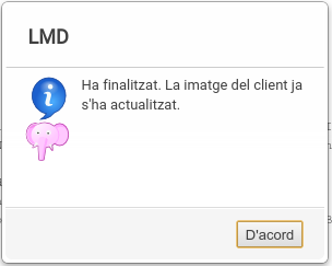 Al finalitzar, apareix una notificació indicant que ha finalitzat el procés i un missatge en el progrés indicant que ha finalitzat correctament.