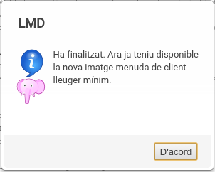 Si polsem el botó Sí! Sembla fantàstic!, començarà el procés de creació, el qual finalitzarà amb un missatge com el que es mostra: