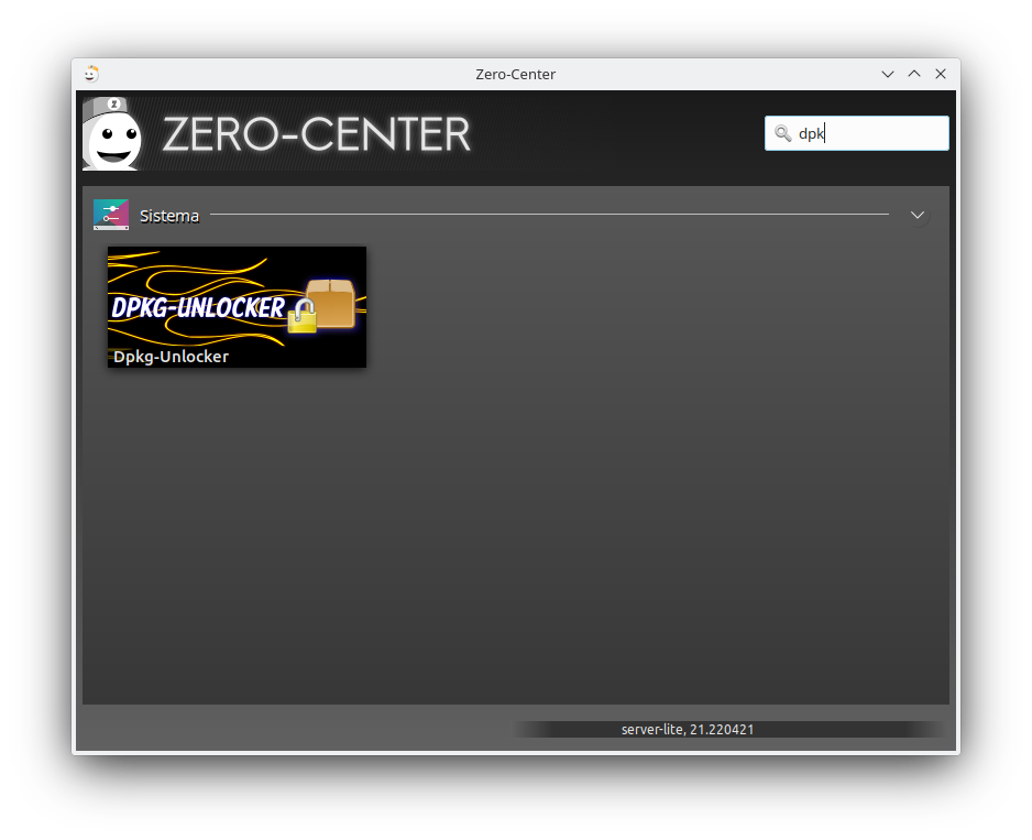 Para ejecutar la aplicación hay que acceder al zero-center y en la sección “Sistemas” lanzar el zomando correspondiente a dpkg-unlocker.