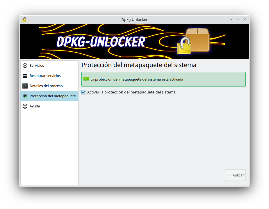 18 Dpkg Unlocker ES Para activar de nuevo la protección, bastará con marcar de nuevo el check y aplicar los cambios.