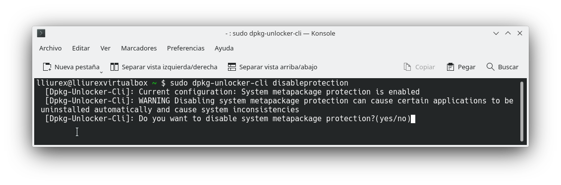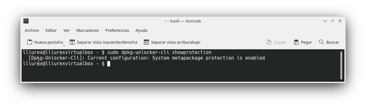 Para activarla de nuevo, el comando a usar sería: dpkg-unlocker-cli enableprotection