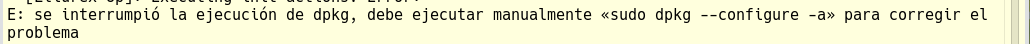 En esta situación al intentar instalar un paquete o actualizar el sistema muestra en la terminal un mensaje similar a este:
