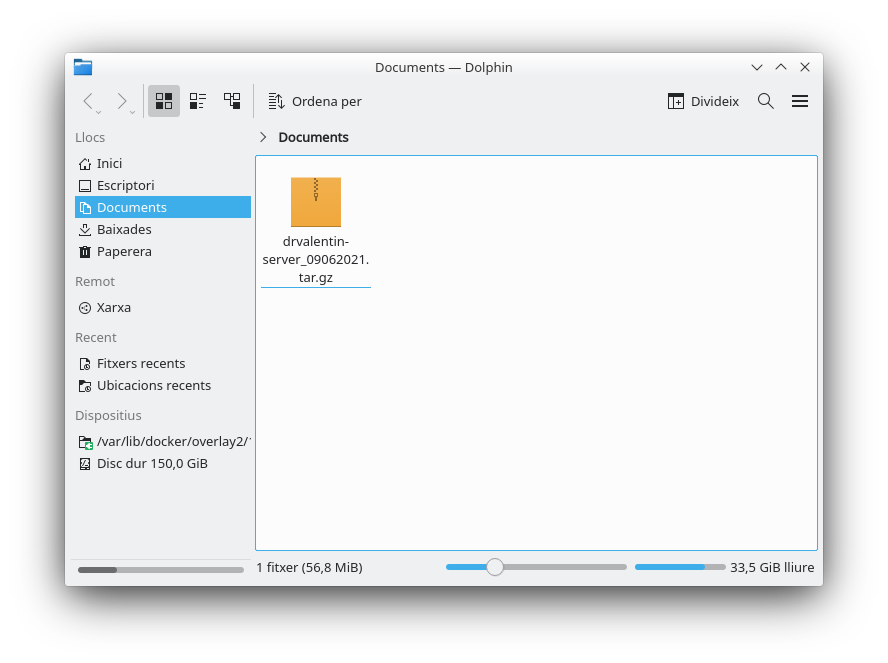 En aquest mode, quan s'acaba l'execució, es mostra un text que marca on està el fitxer de diagnòstic (en l'exemple està en/tmp/drvalentin-server_09062021.tar.gz).