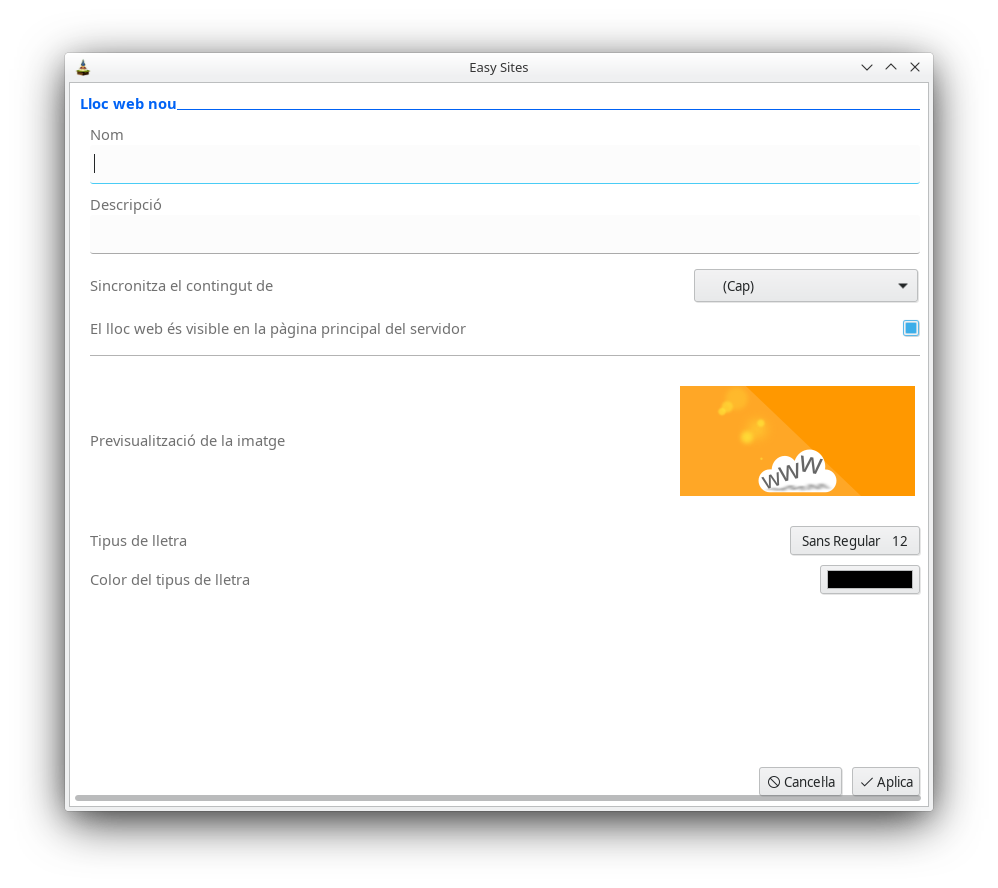 Una vegada introduïda tota la informació, cal fer clic sobre “Aplica” per a crear el lloc. Si tot el procés finalitza correctament, el nou lloc apareixerà en la finestra principal d'Easy-Sites.