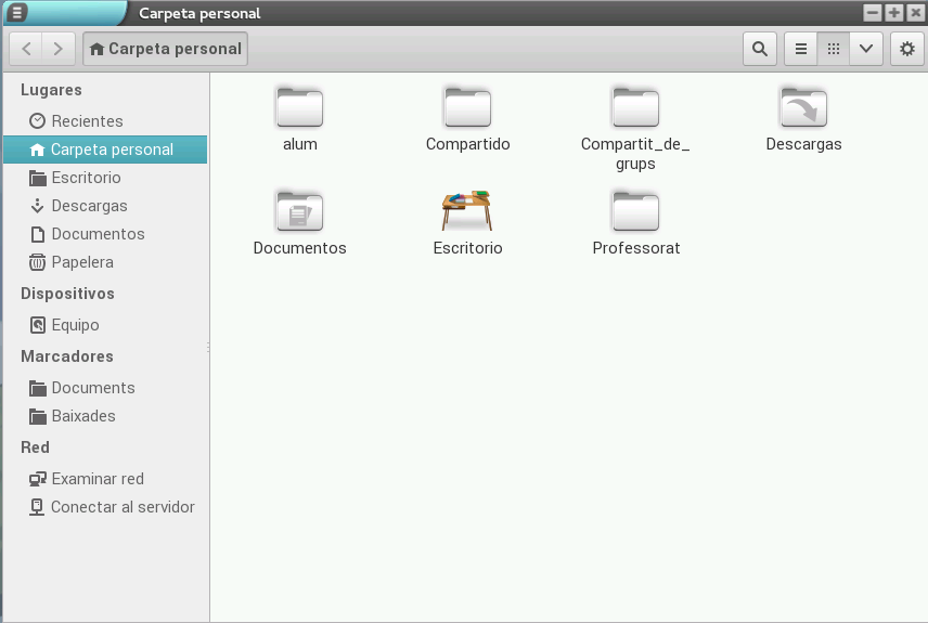 La carpeta alum permite acceder a los ficheros contenidos en los directorios Documentos y Escritorio del alumnado del sistema.