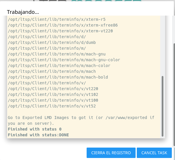 Finalmente cuando haya terminado nos podemos fijar en el log para ver que la imagen se ha exportado correctamente.