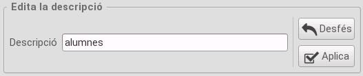 • Descripció: podem canviar la descripció del grup, introduint el valor en el camp dedicat a això i polsant el botó Aplica.