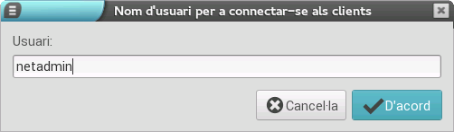 La primera cosa que requereix l'execució de la Gestió remota és un nom d'usuari amb el qual connectar-se als clients que estiguen en la xarxa del servidor. En el cas d'utilitzar un usuari local administrador dels clients, cal ser conscient que tots els clients han de tindre el mateix nom d'usuari i la mateixa contrasenya. És per això que es recomana utilitzar l'usuari administrador que es crea en inicialitzar el servidor d'aula de LliureX: netadmin.