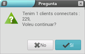 Una vegada introduït el nom d'usuari i havent polsat el botó D'acord, el programa detecta els clients connectats i demana confirmació per a connectar-se.