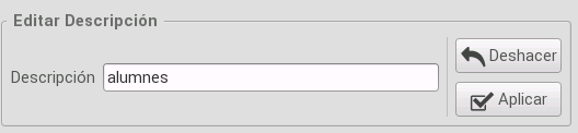 • Descripción: podemos cambiar la descripción del grupo, introduciendo el valor en el campo dedicado a ello y pulsando el botón Aplicar.