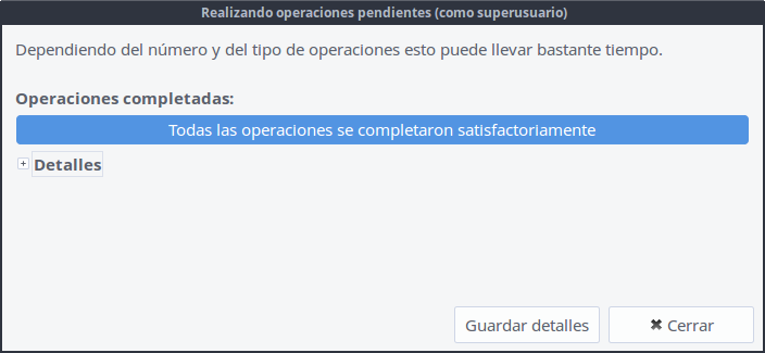 Podemos ver que el programa no realiza ninguna acción, éstas nos aparecen en la parte inferior de la ventana. Para que realice las acciones debemos de darle al botón aplicar y realizará todas las acciones: